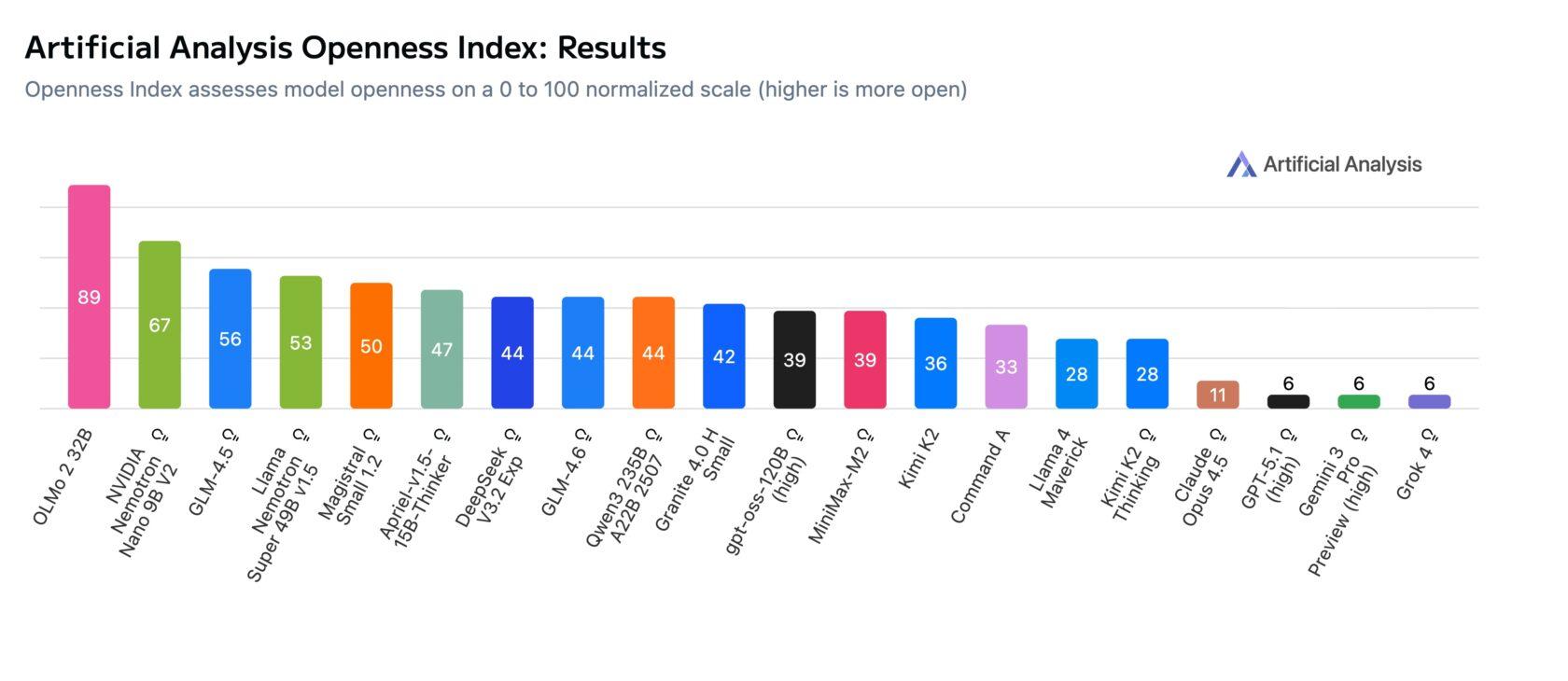 这些举措进一步深化了 NVIDIA 对开源生态的承诺。这一努力获得了独立 AI 基准测试机构 Artificial Analysis 最新“开放性指数”(Openness Index)的认可。该指数基于模型许可的开放性、数据透明度及技术细节的可用性,将 NVIDIA Nemotron 系列开源技术评为 AI 生态系统中最开放的前沿 AI 开发技术之一。