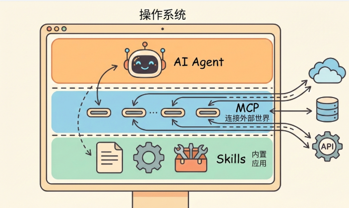 一句话解释 MCP 和 Skills 的区别:如果 AI Agent 是操作系统,MCP 就是 USB 协议,Skills 就是应用程序。