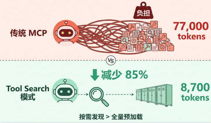 - MCP 工具不再预加载,而是按需发现