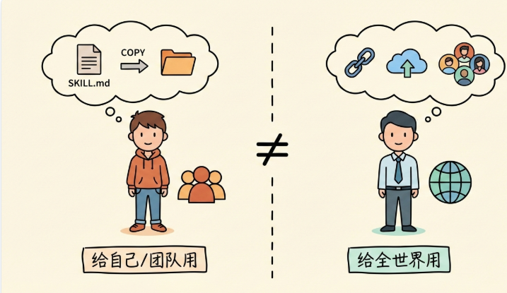仔细看其实这两拨人的需求完全不一样。不是功能差异,是分发方式的差异。Skills 是给自己人用的,MCP 是给全世界用的。