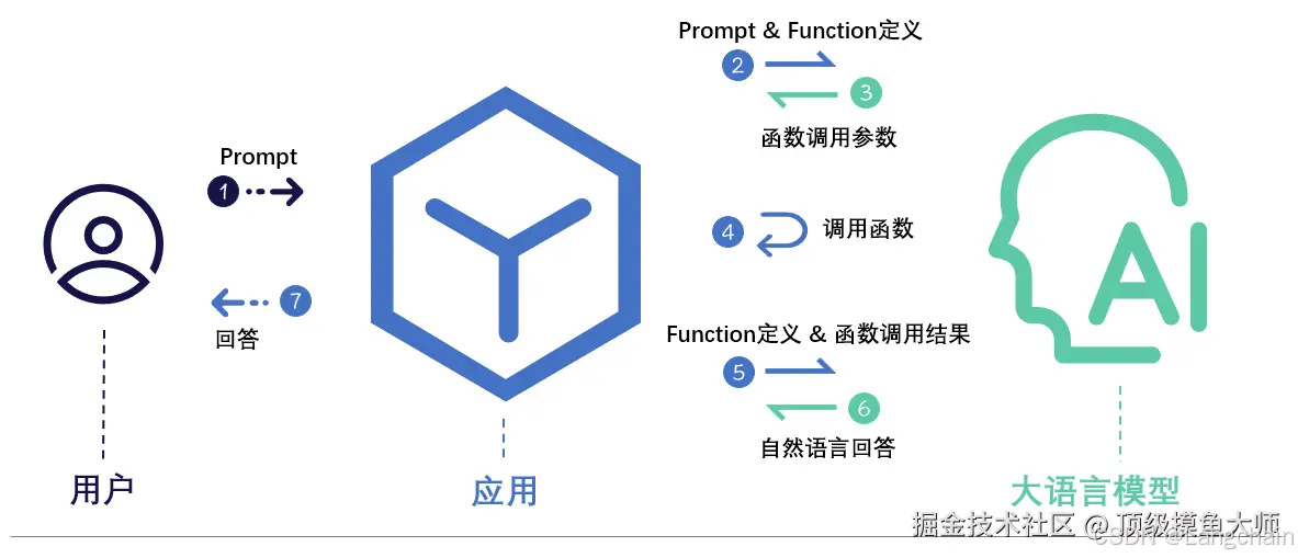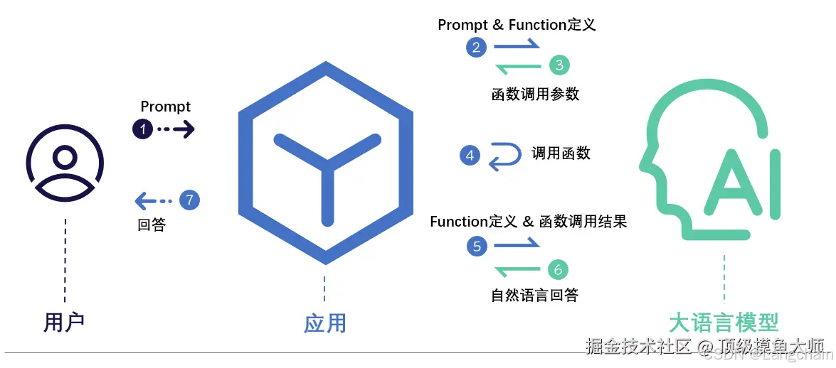 - 应用得到函数的输出以后,会再将结果和函数定义一起,一并再次发送给大模型。