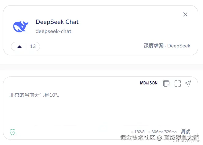 - 点击执行后,我们会再次收到大模型的回复,这时,就已经完成了整个 Function Calling 的整个流程。