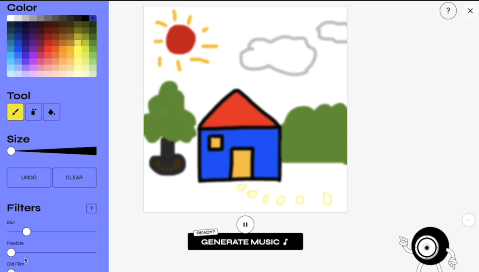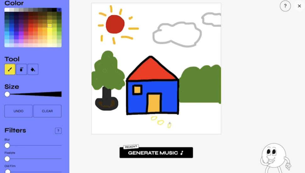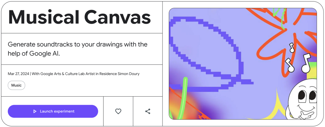 我们在数字画布上随意涂鸦,Gemini 会即时评价该作品,然后用 MusicLM 生成一段与之匹配的配乐。