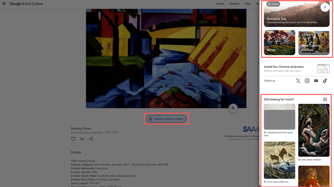 如果我们不小心点到「Explore related content」,还能看到同时期的艺术作品。
