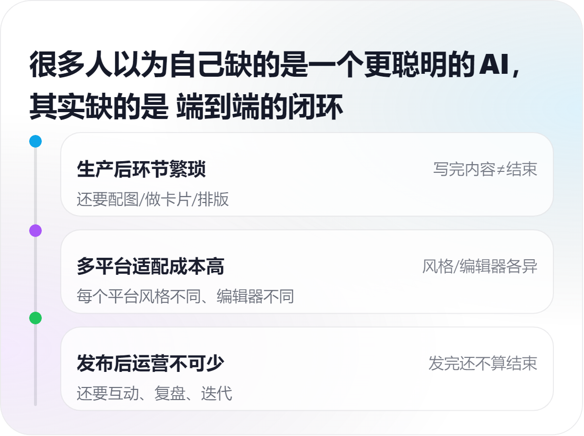 - 写完内容 → 还要配图/做卡片/排版