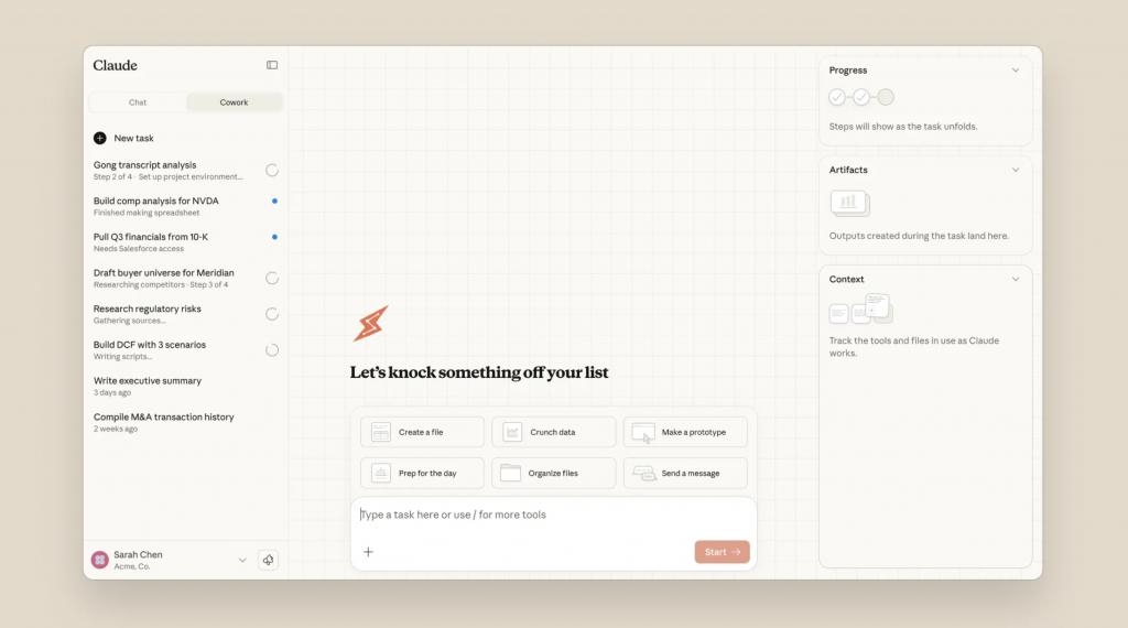 你给它一个目标,它会在可控的范围内(例如你授权的文件夹)读写文件、整理内容、生成交付物,并且能把一个复杂任务拆成多个子任务推进。官方也把它定位为 research preview,强调要用专门文件夹、注意备份、注意提示注入等风险点。