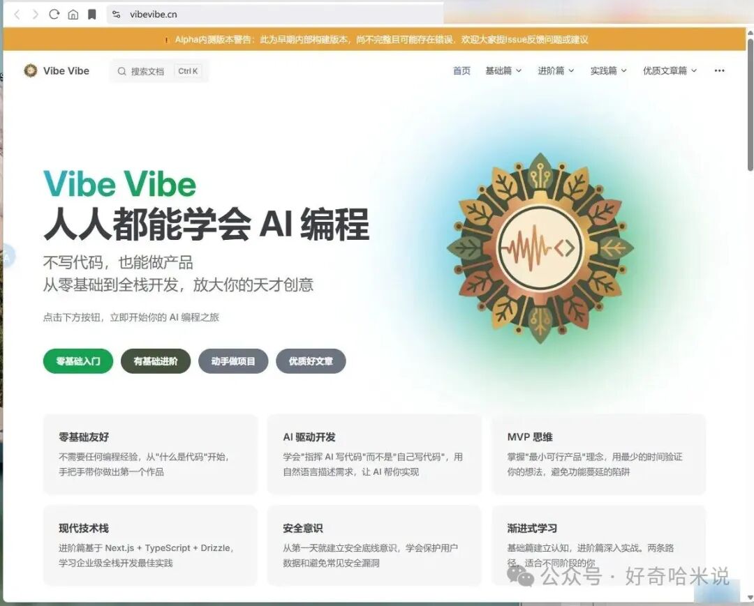 vibe vibe 人人都能学会 AI编程, 介绍 AI编程方法论的免费教程 https://www.vibevibe.cn/