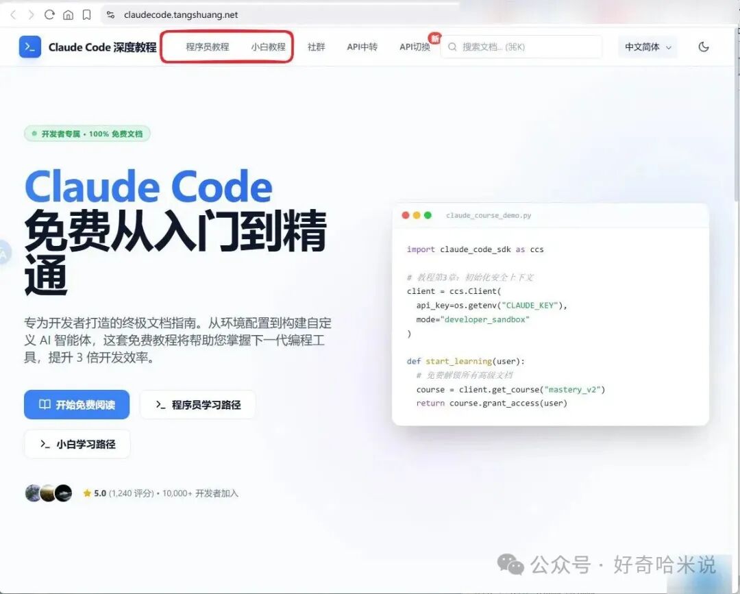 Claude code 免费从入门到精通,为程序员和小白准备的免费教程 https://claudecode.tangshuang.net/