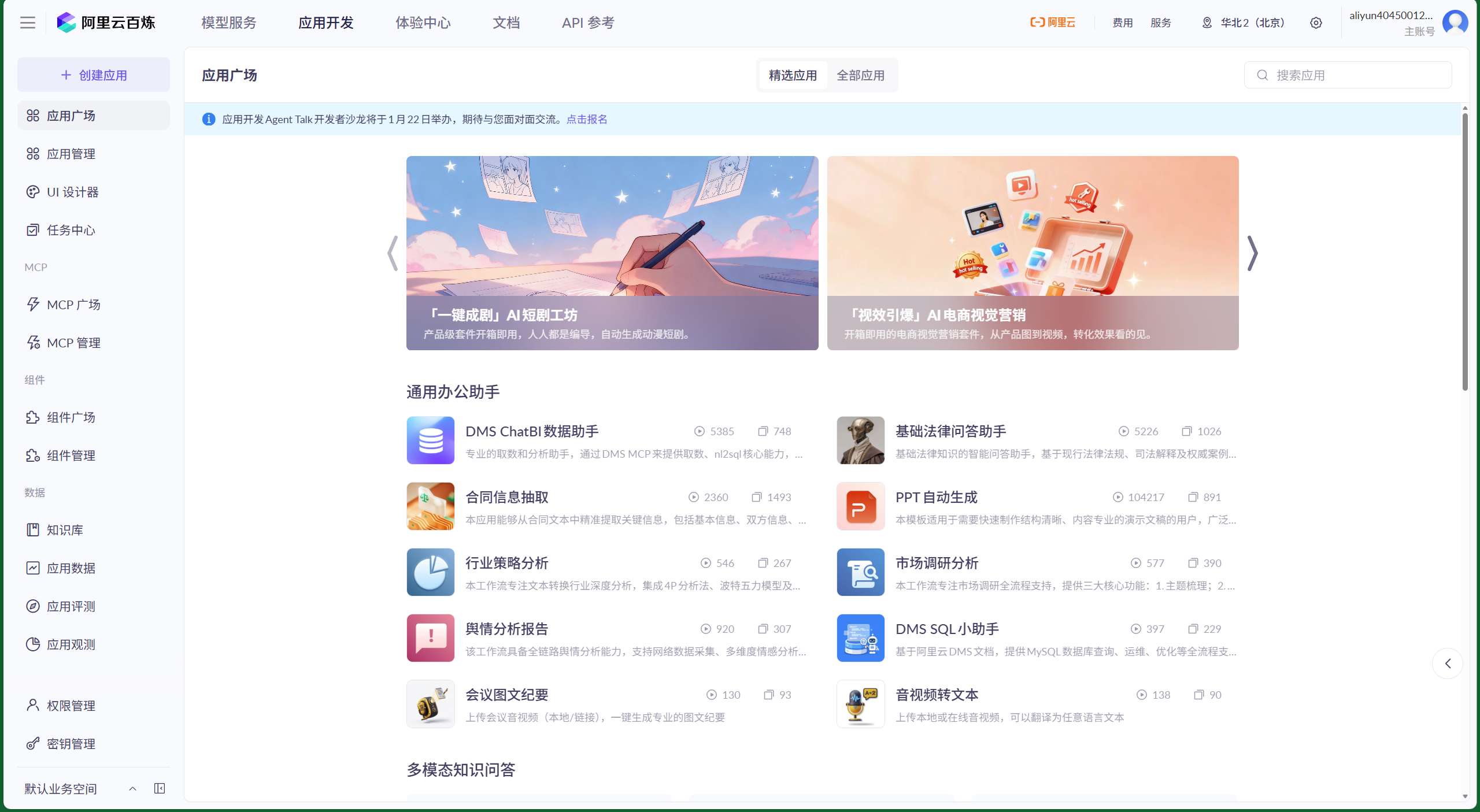 此外,阿里云百炼平台的应用广场提供了大量模板。