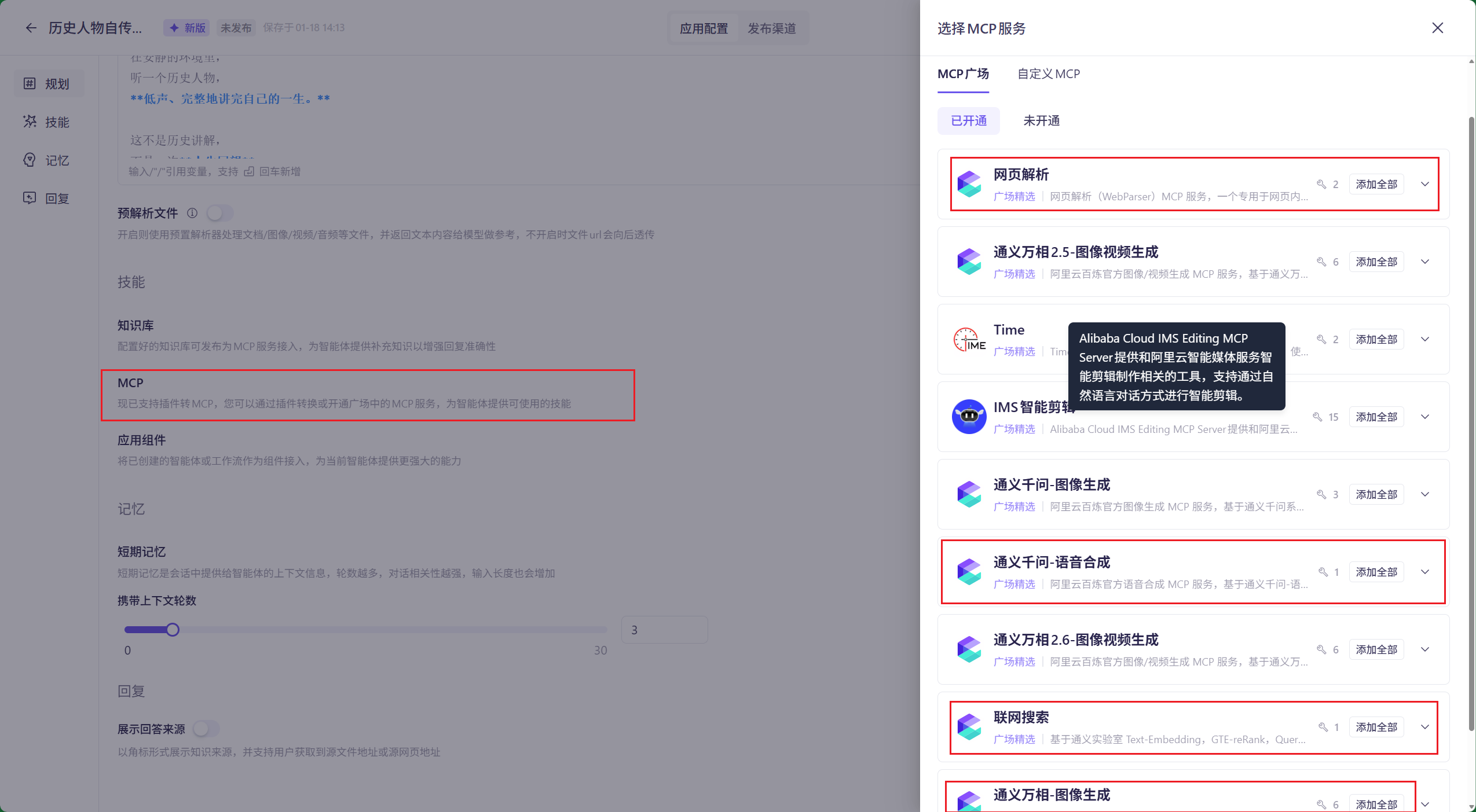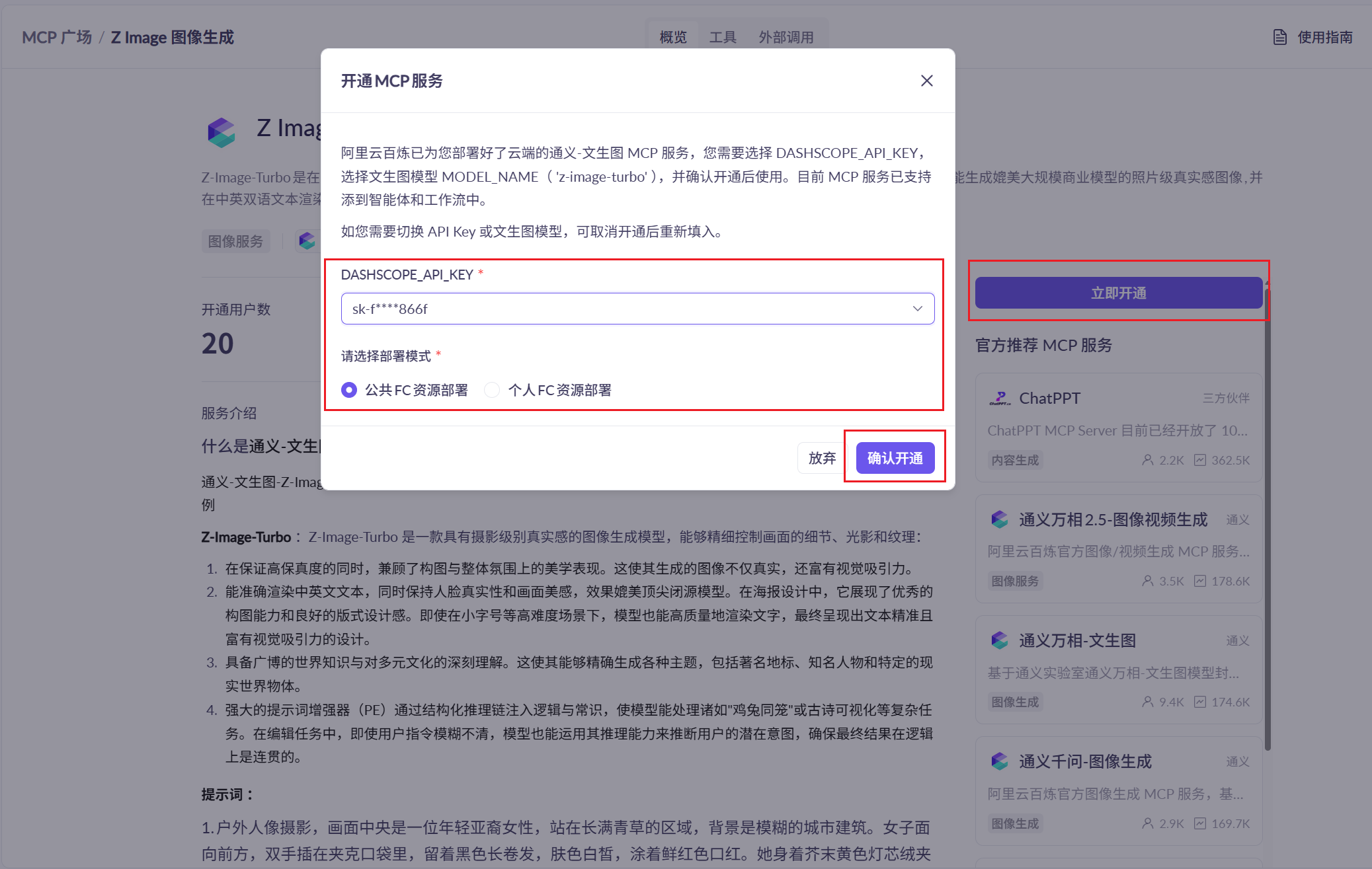 使用前需要先开通对应的 MCP 服务,操作也很简单。