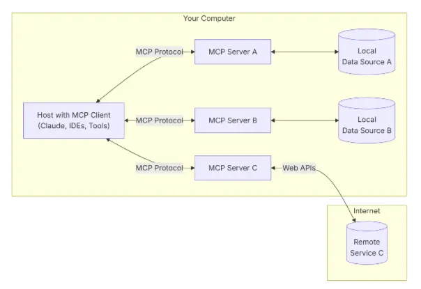 相比仅基于function call的应用而言,其实就是引入了mcp来管理工具资源,除此之外其他的都是一样的。下面给出了工作流程图解。
