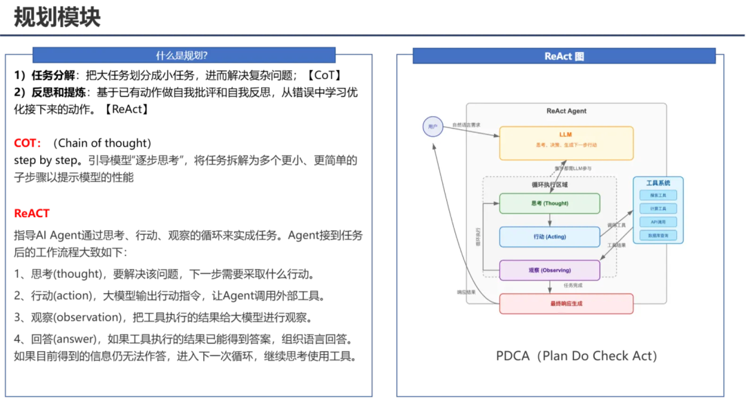 ReAct整体其实很像PDCA流程,先计划,然后做,check之后再处理。