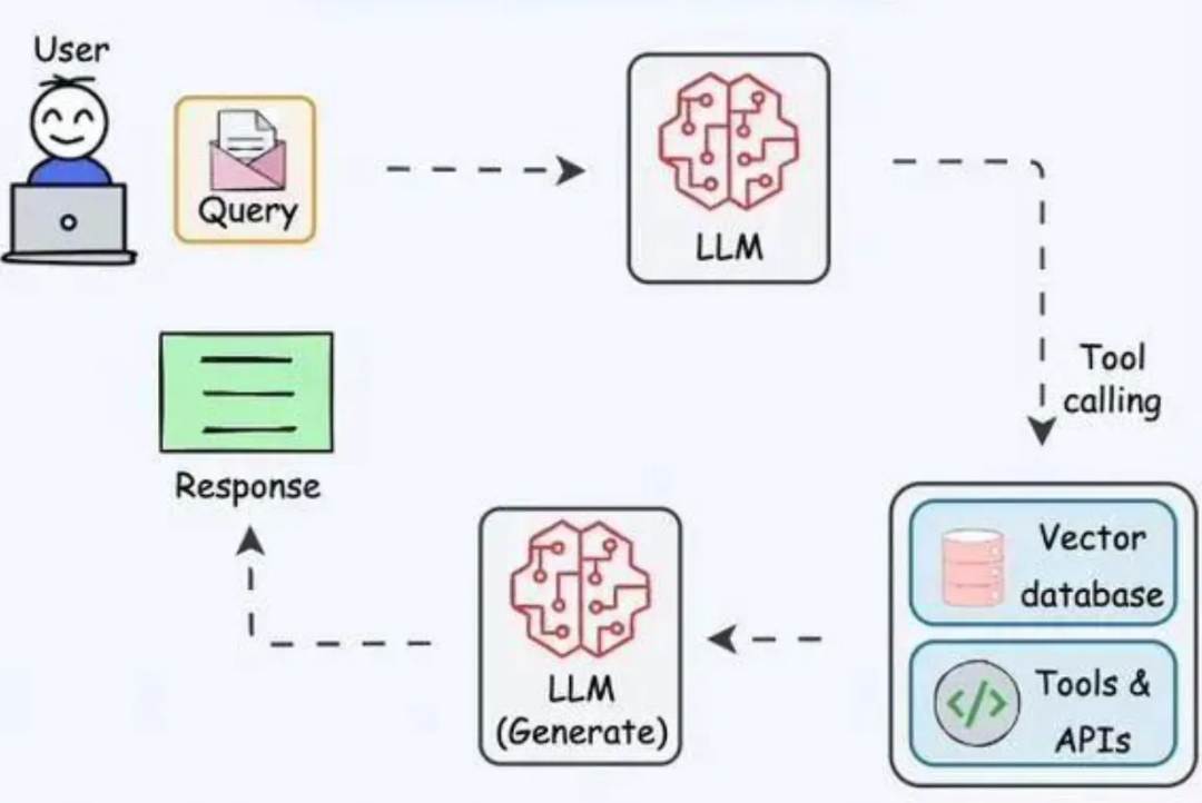 核心逻辑:大模型负责“理解问题 + 安排任务”,外部工具负责“具体执行”,最后模型把结果包装成你能听懂的话。