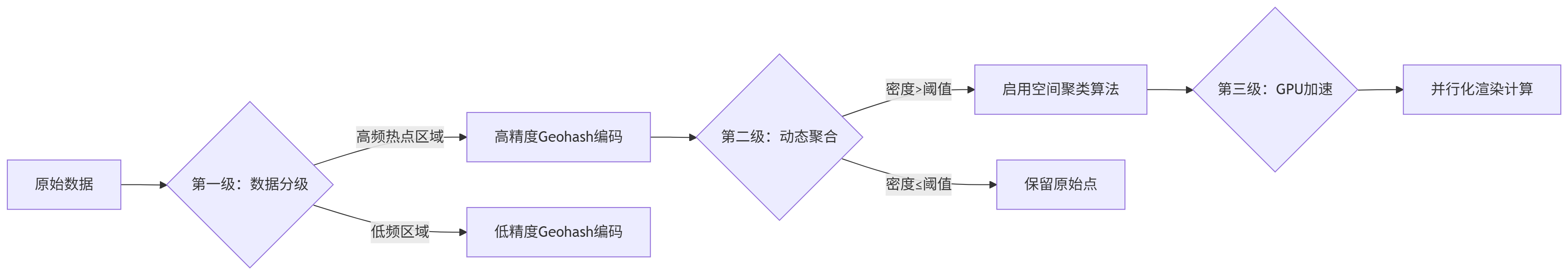 | 未做空间裁剪 | 无效数据占比60% | 实时过滤视口范围外的数据,减少无效计算 |