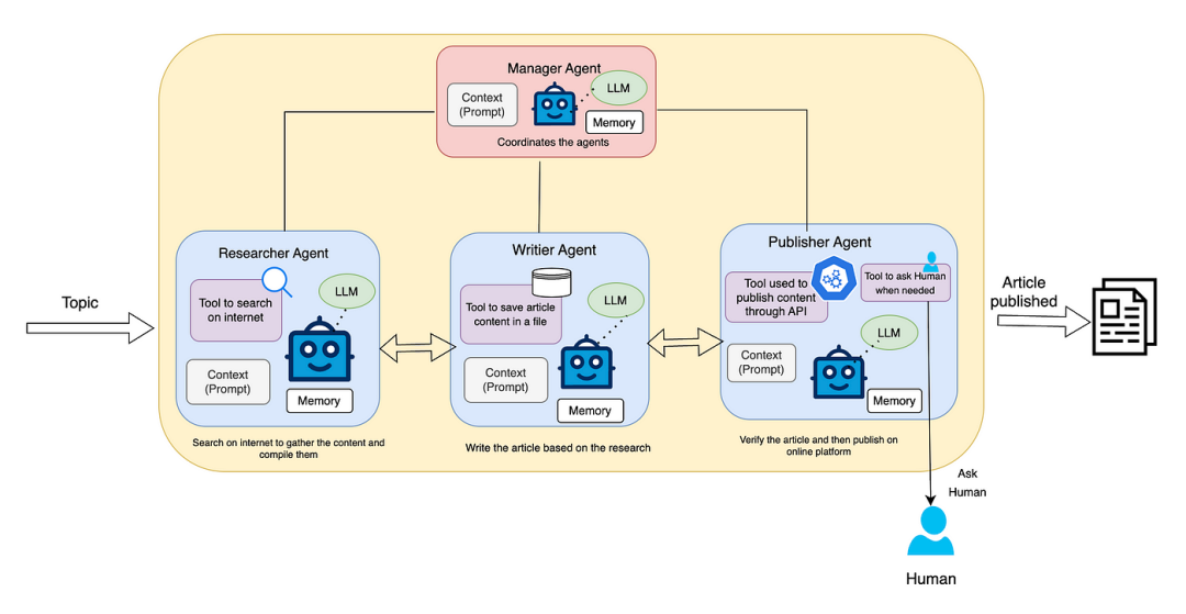 | CrewAI | 轻量级多 Agent 框架,注重任务流程化 | 1. Task 与 Agent 的绑定方式 2. 任务依赖与执行顺序控制 3. 结果验证与反馈机制 | 1. 官方文档:CrewAI Docs 2. 实战项目:CrewAI 官方提供的 “市场分析 Agent”“客服 Agent” 案例 |