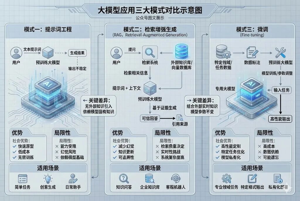 一、大模型应用开发的三大模式:选型逻辑与适用场景