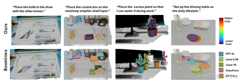 2、中层"空间参谋":将结构化计划转化为3D空间中的"可行性地图",为具体行动提供几何常识指导。