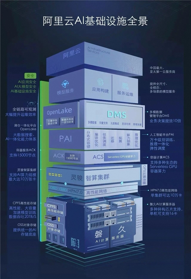 定位:以飞天操作系统为核心的全栈自研 AI Infra 服务商,聚焦 “算力 - 存储 - 算法 - 平台” 一体化架构,主打 “超高性能 + 生态兼容 + 弹性伸缩”,支撑超大规模模型训推与产业级 AI 应用落地。