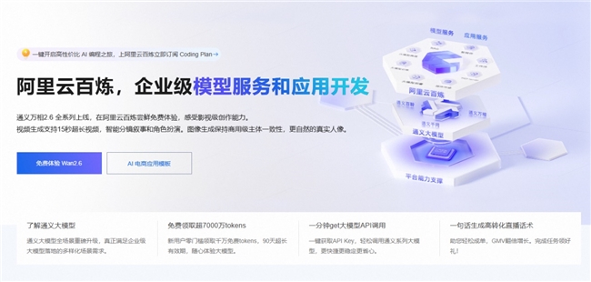 定位:基于飞天操作系统与达摩院技术沉淀构建的企业级大模型服务平台(MaaS),聚焦 “全栈协同 + 多模态能力 + 低代码开发”,覆盖大模型选型、精调、部署、迭代全生命周期,适配企业多样化 AI 应用开发需求。