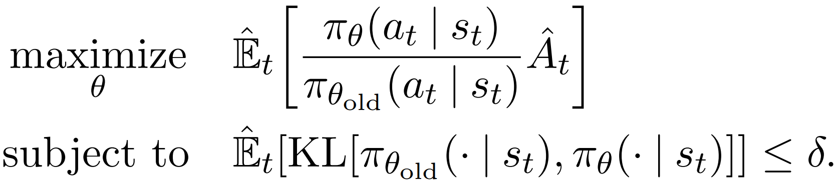 硬约束的TRPO;代理目标函数 + 策略变化KL散度约束