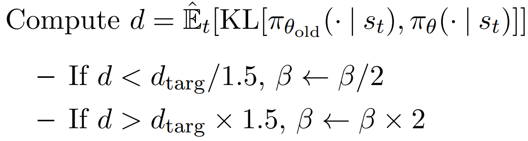 如果这次 KL 变化比较大,则下一次的惩罚系数加倍 扼制变化过大;