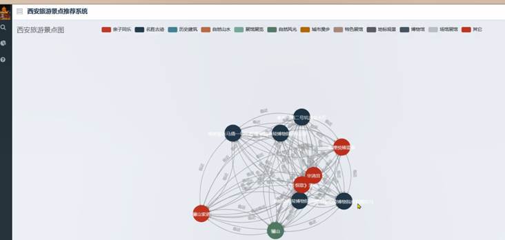 用户可通过输入特定的景点名称或相关关键词,如“华清宫”“历史”等,系统借助自然语言处理模型精准解析用户意图,利用Neo4j图数据库的强大查询功能,快速检索出与该景点直接相关的临近景点信息,涵盖自然景观、人文古迹、现代娱乐等多种景点类型,并以直观的图表或清晰的列表形式呈现给用户,帮助用户迅速把握景点之间的关联脉络,满足用户对特定景点周边信息的查询需求。