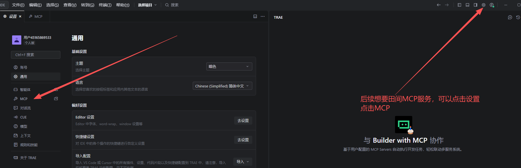 TRAE的模型上下文协议(MCP)是为大模型打通外部工具与服务的标准化通信框架,核心作用是让TRAE中的各类智能体作为MCP客户端,向第三方MCP Server发起请求并调用其工具能力,以此突破智能体原生功能边界,实现与外部服务的无缝联动。该协议支持stdio、SSE、Streamable HTTP等多种传输方式,也提供了从MCP市场一键添加、手动配置自定义服务两种灵活的MCP Server接入方式,接入后的服务可直接配置到TRAE内置智能体或自定义智能体中使用,既能实现MasterGo设计稿直转前端代码、MySQL数据库自然语言操作这类具体开发场景的智能化,也能为SOLO Coder等核心智能体补充工具调用能力,让多智能体协同开发的场景覆盖更全面。