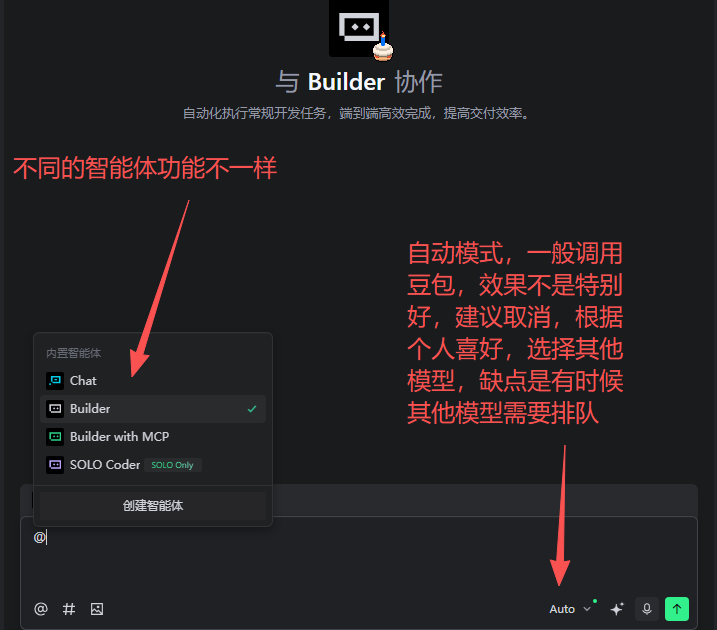 使用Trae需掌握的关键要点:操作上,可根据需求切换智能体——快速原型用SOLO Builder,复杂项目迭代用SOLO Coder,调用Skill仅需将技能包放入指定目录;效率上,复杂任务建议开启Plan模式让AI先生成开发计划,同时善用多模型切换(轻量任务选MiniMax-M2,复杂逻辑选GLM-4.7),进一步提升开发精准度。