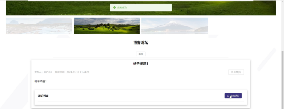 博客论坛:在博客论坛页面的输入栏中输入标题进行查询或发布帖子,可以查看到博客论坛详细信息,并根据需要进行点赞或评论等操作。博客论坛页面如图5-5所示: