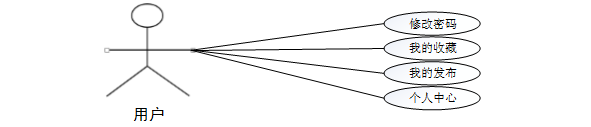用户注册登录系统前台,点击个人中心可以对个人中心、修改密码、我的发布、我的收藏等功能。用户用例如图3-3所示。