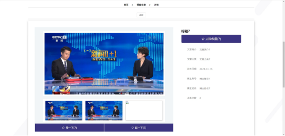博客文章:在博客文章页面的输入栏中输入标题进行查询,可以查看到博客文章详细信息,并根据需要进行赞、踩、评论或收藏等操作。博客文章页面如图5-3所示: