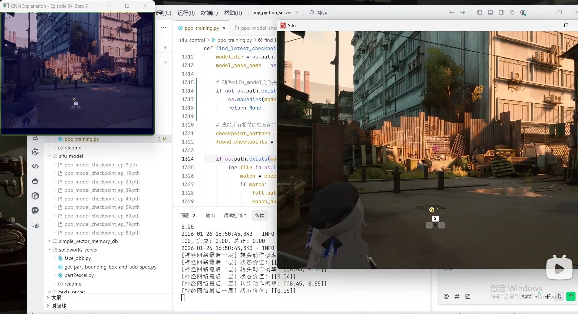 - 决策逻辑: PPO的大脑接收CNN提取的特征,然后输出一个概率(比如:向左走的概率是70%,向右走的概率是30%)。