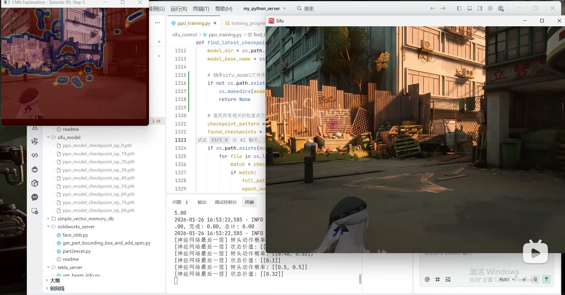 你提到的“PPO两个动作”、“CNN加掩码可视化”,这听起来非常像深度强化学习(DRL)中的场景(例如用PPO算法训练智能体玩视频游戏)。