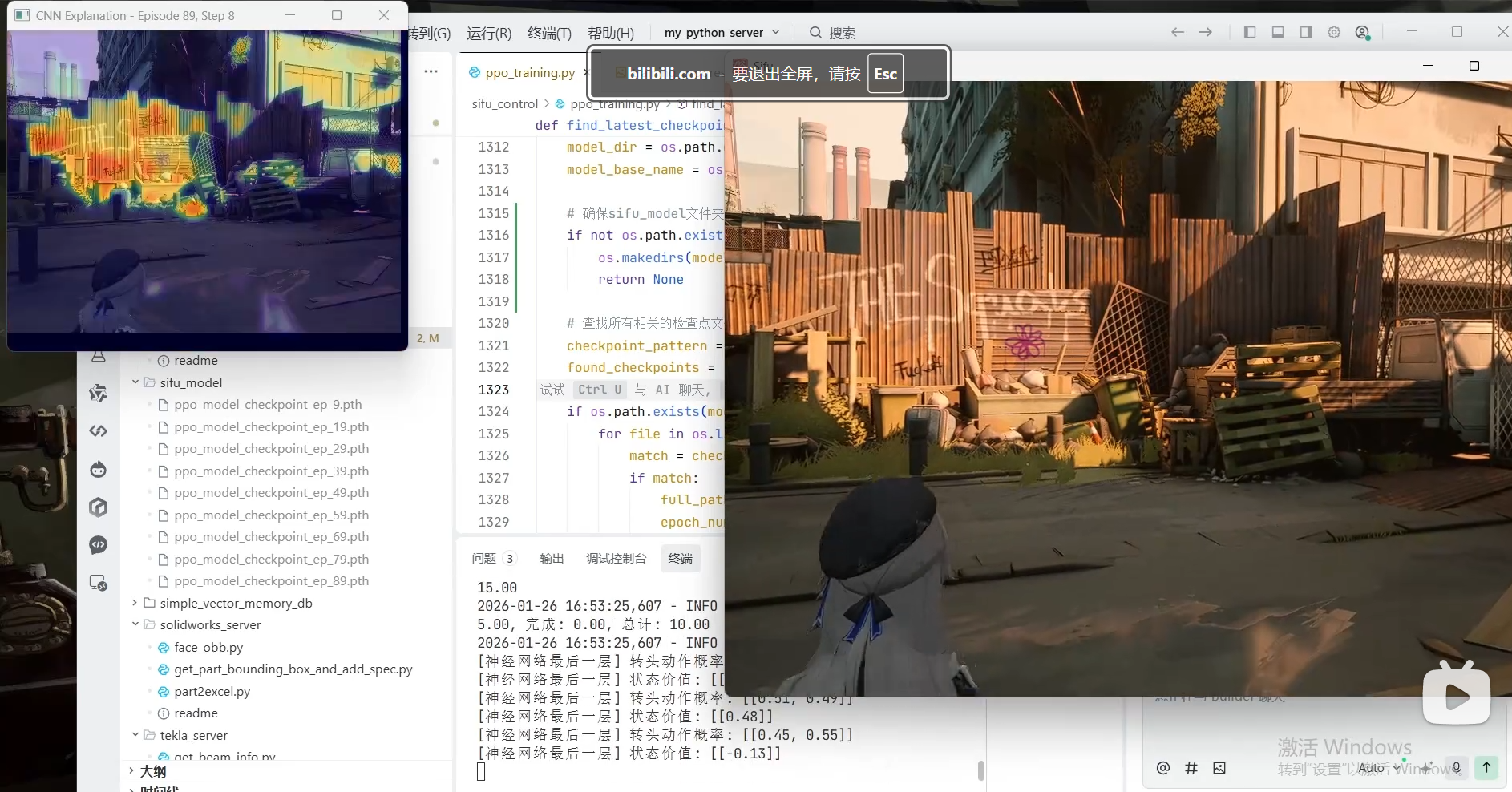 - 反直觉的情况: 如果画面右侧高亮,可能是因为右侧有怪物。这时候PPO的决策不是“向右走”,而是“向左走”(逃离高亮区域)。