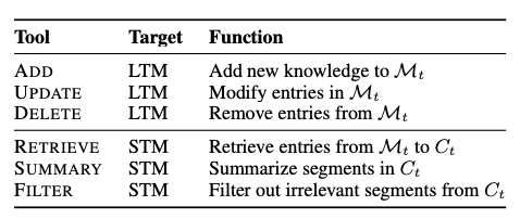 SUMMARY和FILTER工具来保持上下文的干净和高效。此时,第一阶段构建的 LTM 会被保留。