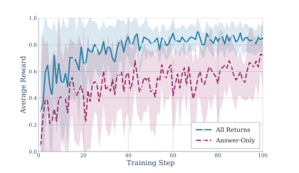 - • Answer-Only(虚线):只根据最终答案的好坏来给予奖励。