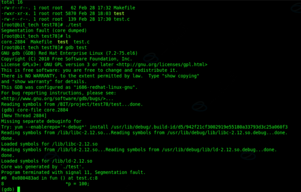 Shell进程相同的Resource Limit值,这样就可以产生Core Dump了。 使用core⽂件: