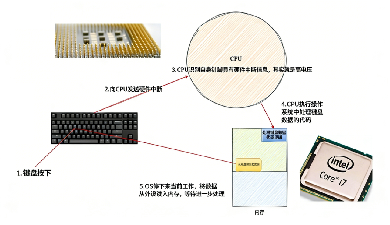 • 用户按下 Ctrl+C ,这个键盘输入产生一个硬件中断,被OS获取,解释成信号,发送给目标前台进