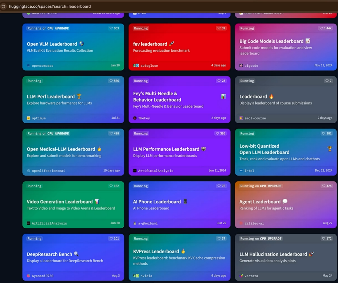 建立标准化评估基准:在模型能力多样且发展迅速的情况下,Leaderboard 通过一套固定的任务和数据集,为所有模型提供了一个“统一考场”,使得横向对比成为可能。