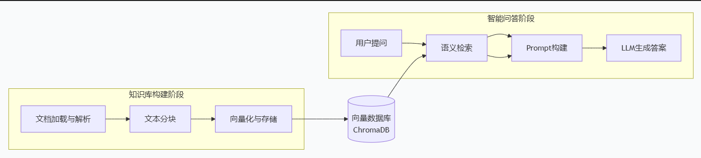 针对“个人知识库问答”场景,设计了一个基于RAG(检索增强生成)的架构方案。这个方案将文档、向量搜索与LLM结合,实现“从投喂的文档中学习并回答问题”的目标。