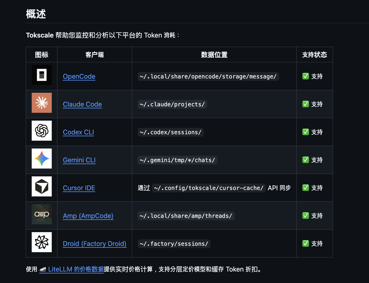 Tokscale是一个用于追踪OpenCode、Claude Code、Codex、Gemini CLI、Cursor IDE、AmpCode和Factory Droid等多个平台token使用情况的命令行工具。它不仅能帮你精确统计token消耗,还能生成类似Spotify Wrapped的年度回顾图片,让你直观了解自己的AI编程之旅!
