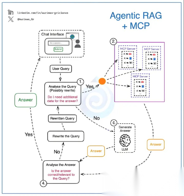 RAG和MCP不仅分别突破大模型的静态知识边界与模态壁垒,二者结合更能激发显著的协同增强效应: