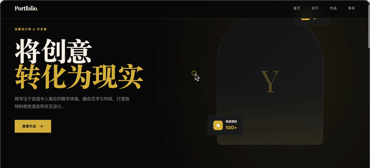 现在安装了 frontend-design 这个 教 AI 生成专业设计感网站 的技能后,你输入:“帮我开发个人作品集网站”。