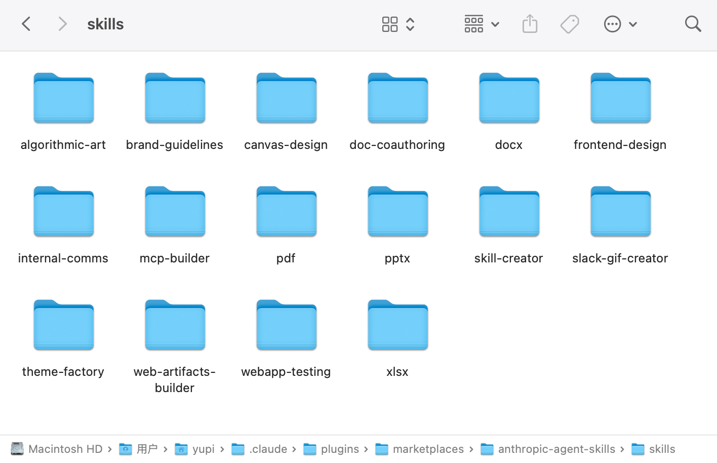 由于每个技能的复杂度不同,结构也会存在区别。我们可以在本地目录中找到已安装的技能文件夹。