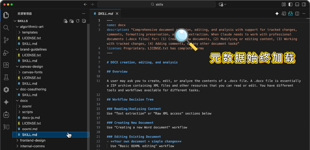 你好奇道:咦,为什么 Skills 能做到安装即用?技能包里面到底有啥?AI 又是怎么知道该用哪个技能的?