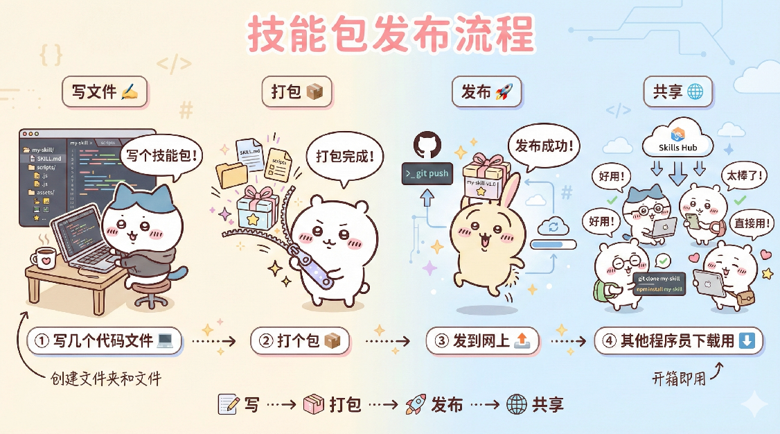 测试没问题后,你还可以把它开源到 GitHub,或者上传到 Claude Skills Hub 这样的社区平台,让所有用户都能用。