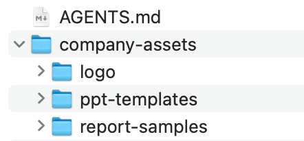 最后,把公司的 Logo、PPT 模板、报告样例放在子文件夹里就行了。妈妈再也不用担心我的周报了~