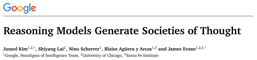 谷歌、芝加哥大学等机构的研究者最近发表的一篇论文给出了一个更具结构性的答案,推理能力的提升并非仅源于计算步数的增加,而是来自模型在推理过程中隐式模拟了一种复杂的、类多智能体的交互结构,他们称之为「思维社会」(society of thought)。