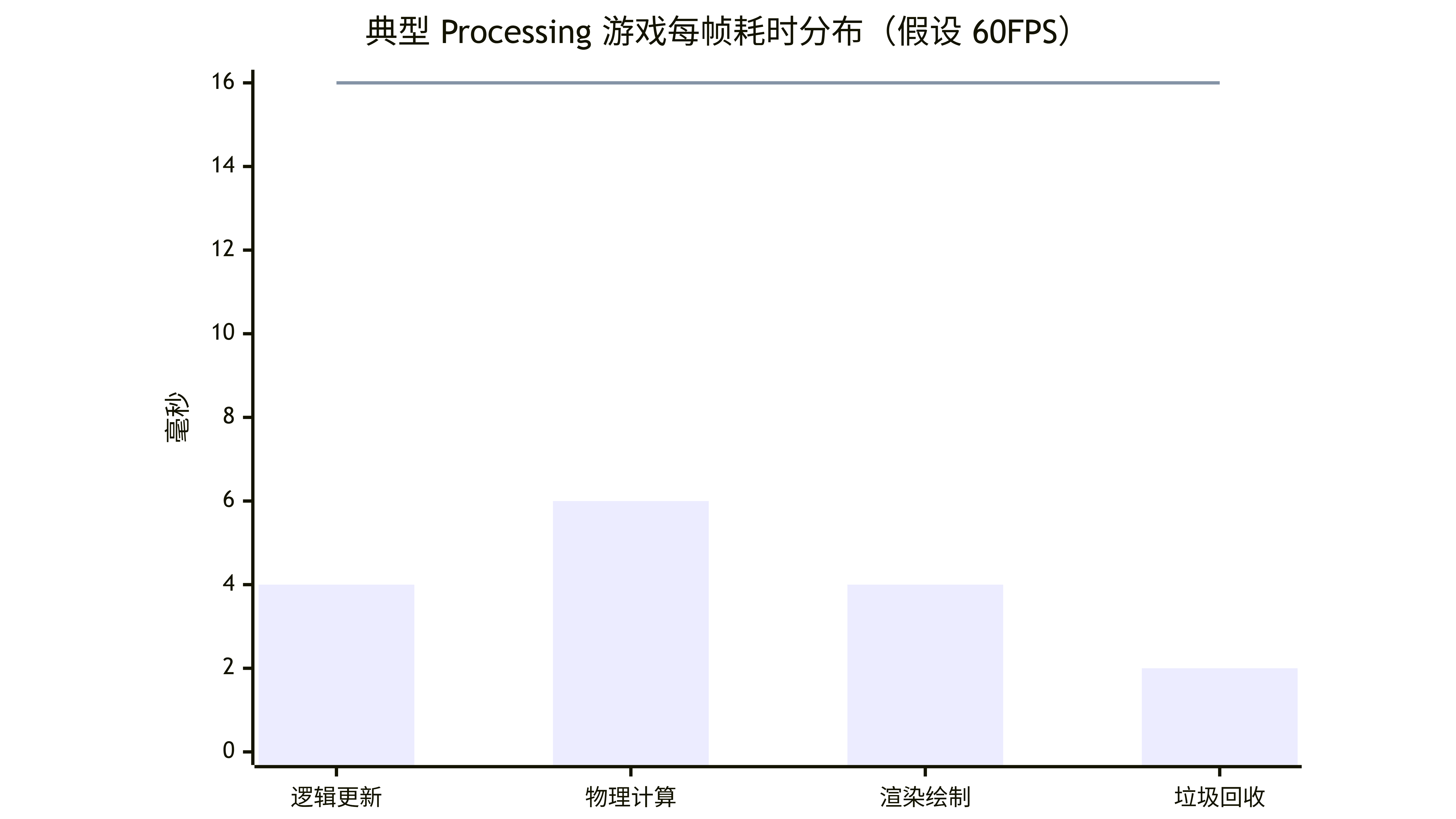 title "典型 Processing 游戏每帧耗时分布(假设 60FPS)"