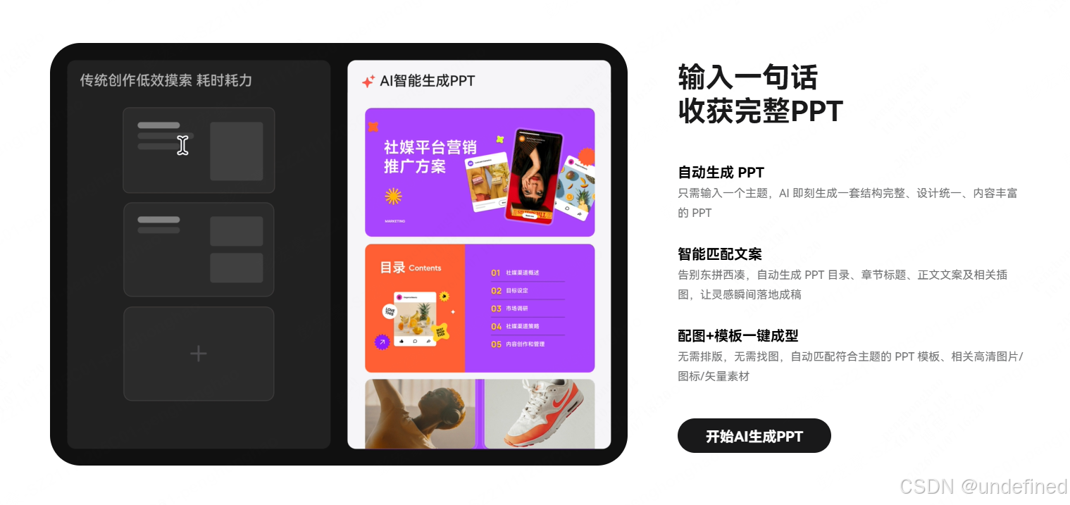 大多数工具败在第一步,生成的 PPT 就像是把 Word 文档直接截图贴上去一样,惨不忍睹。